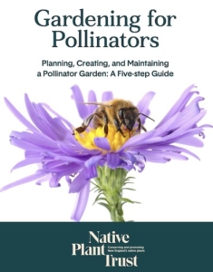 Gardening for Pollinators, an authoritative five-step guide by the Native Plant Trust, describes how to plan and plant an ecological garden that supports native bees, butterflies, beetles, hummingbirds, flies, and moths. Click image for this free 34 page pdf booklet.
