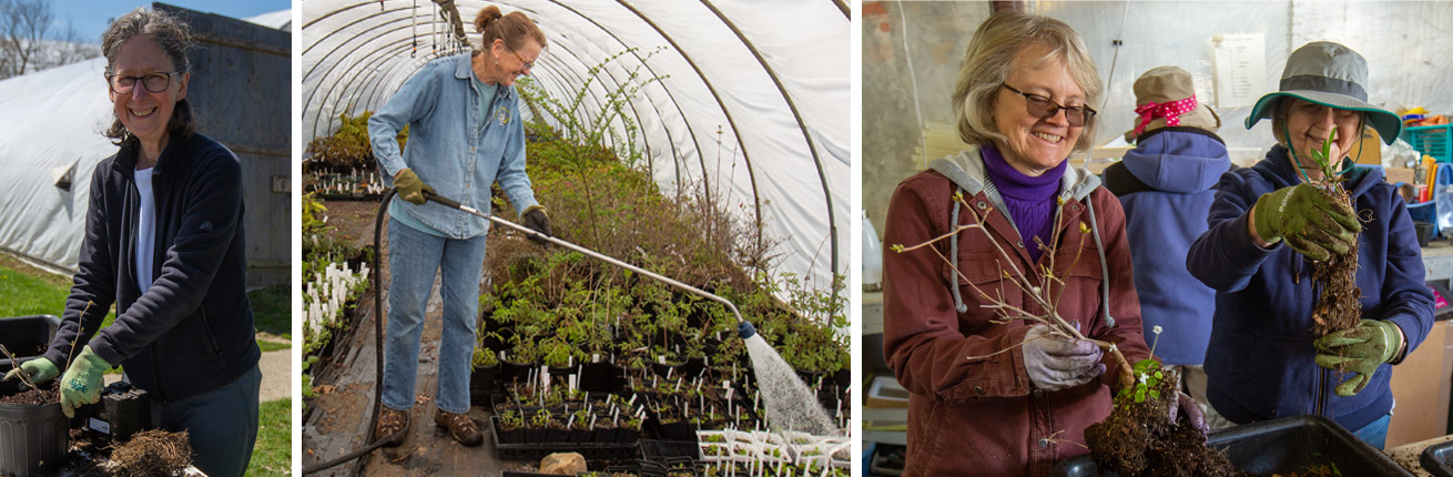 We begin our year with winter sowing, plants grown from seeds offer the greatest biodiversity. All of the seeds we use originate from our (or a nearby) ecoregion, all are native to our ecoregion, and many are grown on seed increase plots, protecting our wild plant populations. SSW runs the May sale, we grow mostly spring-blooming plants and plan all year, so spring is always exciting! In summer we begin to pot up the seedlings that we sowed in winter. We continue to plant seeds and grow out our seedlings throughout the summer. In autumn, many of the SSW team help with the seed harvest at nearby ReSeeding RI foundation plots. We also clean seeds and volunteer at the fall sale. We learn a lot about our native plants working so closely with them throughout the year – and we have a lot of fun! For additional information contact Kate Rakosky