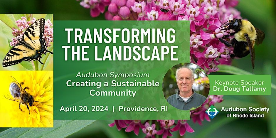 Transforming The Landscape: Audubon Native Plants and Pollinators Symposium focuses on how to become part of a sustainable community and support our native species by creating beautiful pollinator habitat at home. The keynote speaker Dr. Doug Tallamy, Professor and Chair of the Department of Entomology and Wildlife Ecology at the University of Delaware is well known for his lauded books on landscaping for wildlife. The seven other speakers include Shannon Kingsley, the biologist of our ReSeeding RI initiate, which aims to increase the availability of seeds and plants from locally sourced wild native “ecotypic” plant populations. The other speakers are Dr. Steven Alm, Professor of Entomology, and the URI Bee Lab; Lee Ann Freitas, Director, Roger Williams Park Botanical Center; Sally Johnson, Ecoastal Design; Donna Merrill, Founder and President of Pollinator Pathway; Jen West, Coastal Training Program Coordinator, Narragansett Bay Research Reserve and Phoenix Wheeler, Audubon Director of Advocacy. The symposium will take place on April 20, 2024, from 9am to 4pm, at Rhode Island College in Providence.