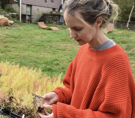 Lizzie Hunt inspecting well developed root system of a plug started from seed. Source: ecoRI – Wild Idea:Collect and Grow Seeds. Photo Frank Carini