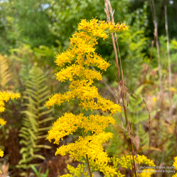 Habitat Value: Supports a vast array of specialist bees, pollinators, host insects, and bird species, including the Aster mining bee (specialist); the eight-spotted miner bee (specialist); the hairy-belted miner bee (specialist); the wavy-lined emerald moth (host); the goldenrod hooded owlet moth (host); flower flies (Syrphidae), tachinid flies; and goldfinches.