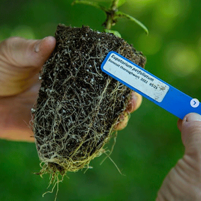 Once our plugs, or small plants, have a strong root system and healthy foliage, they are distributed to our foundation plots.