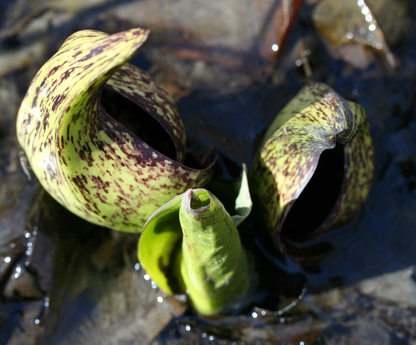 Along a gushing spring brook you can find skunk-cabbage (USDA/GoBotany: Symplocarpus foetidus) dabbling her toes in water and just waiting for a visit either from you or the flies that pollinate her flowers. Personally, I think that she’s more interested in the flies, but we all have friend or two like that.