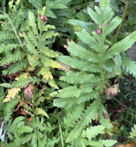 By leaving some areas unmulched, I have enjoyed the following native plants that have colonized my yard on their own: American Holly (Ilex opaca), Eastern Red Cedar (Juniperus virginiana), Wrinkle leaf Goldenrod (Solidago rugosa), Log Fern (Dryopteris celisa), Sensitive Fern (Onoclea sensibilis), and Common Milkweed (Asclepias syriaca). Native plants will also colonize areas already planted with a low- growing ground cover. I recommend the app Picture This to help identify plants.