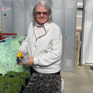 When Seed Starters East (SSE) was still at Plane View, and Dottie had only been a seed starter for maybe a year, she trained under Peggy Buttenbaum to learn how to track and maintain our native seed inventory and how to lead our winter sowing sessions. When Plane View closed and we moved out in the fall of 2023, Dottie led the way to the greenhouse at the Rhode Island Veterans Home in Bristol. (Dottie is a URI Master Gardener and it was her relationship with the head MG there that opened this opportunity for us.) The home gave us a warm space to work in January and February to sow our seed trays. Some people go to Florida for the winter–thanks to Dottie, SSE heads to Bristol!